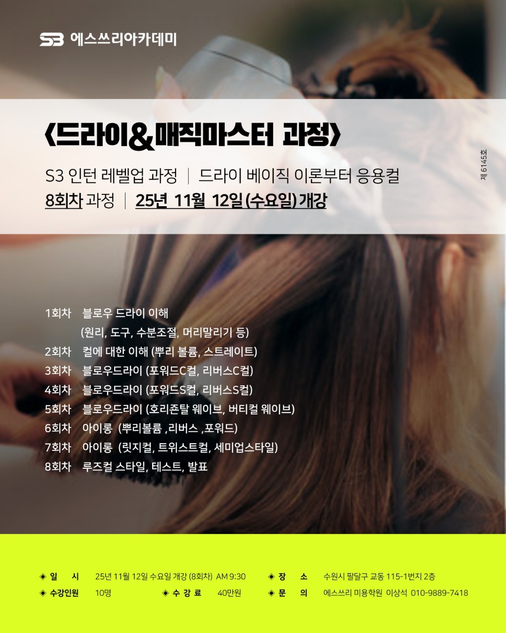 🛑 수요반 : 드라이&매직마스터 과정